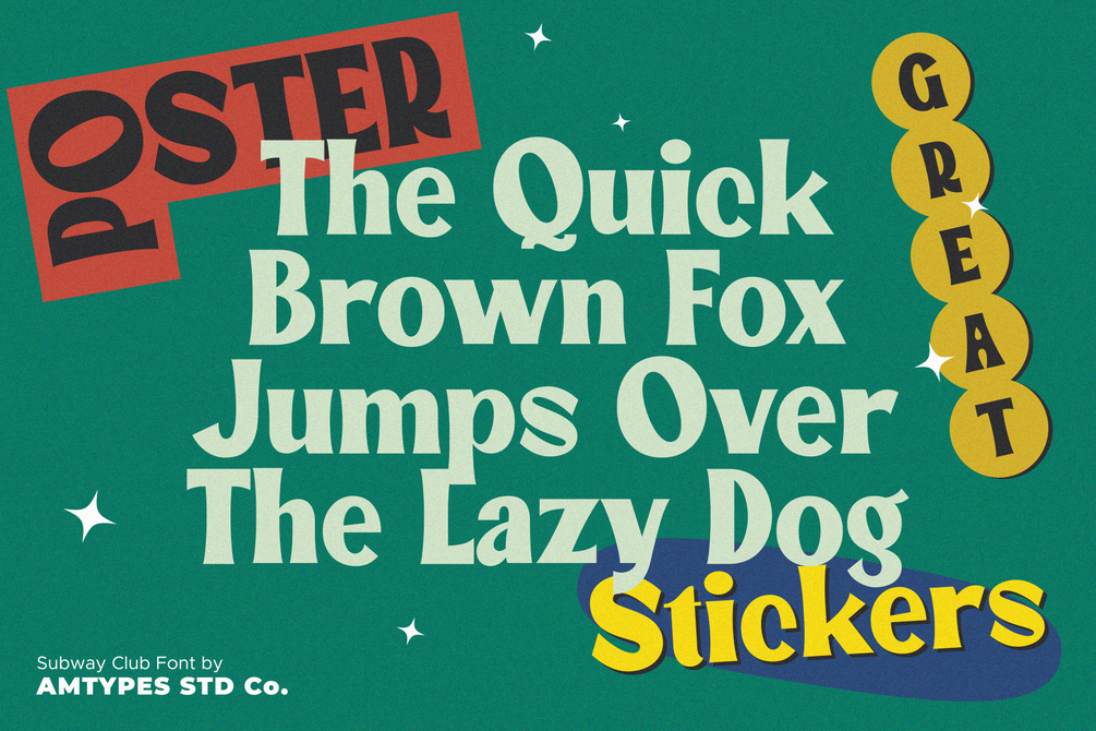 Subway Club is a retro display font made by passion. This font is perfect for print design needs such as posters, stickers, invitations, banners and also for digital design needs.